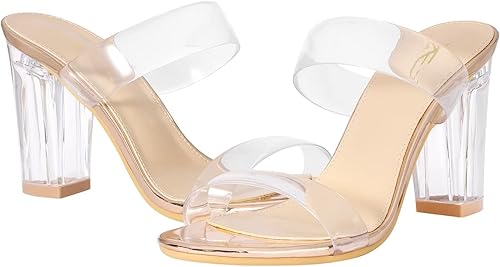 3 inches heeled sandals material: Clear heels made of safe Man Made material composed of PU upper, latex insoles and non-skid rubber soles, soft and skin-friendly materials, giving you the ultimate comfort and no hurt pain of feet.