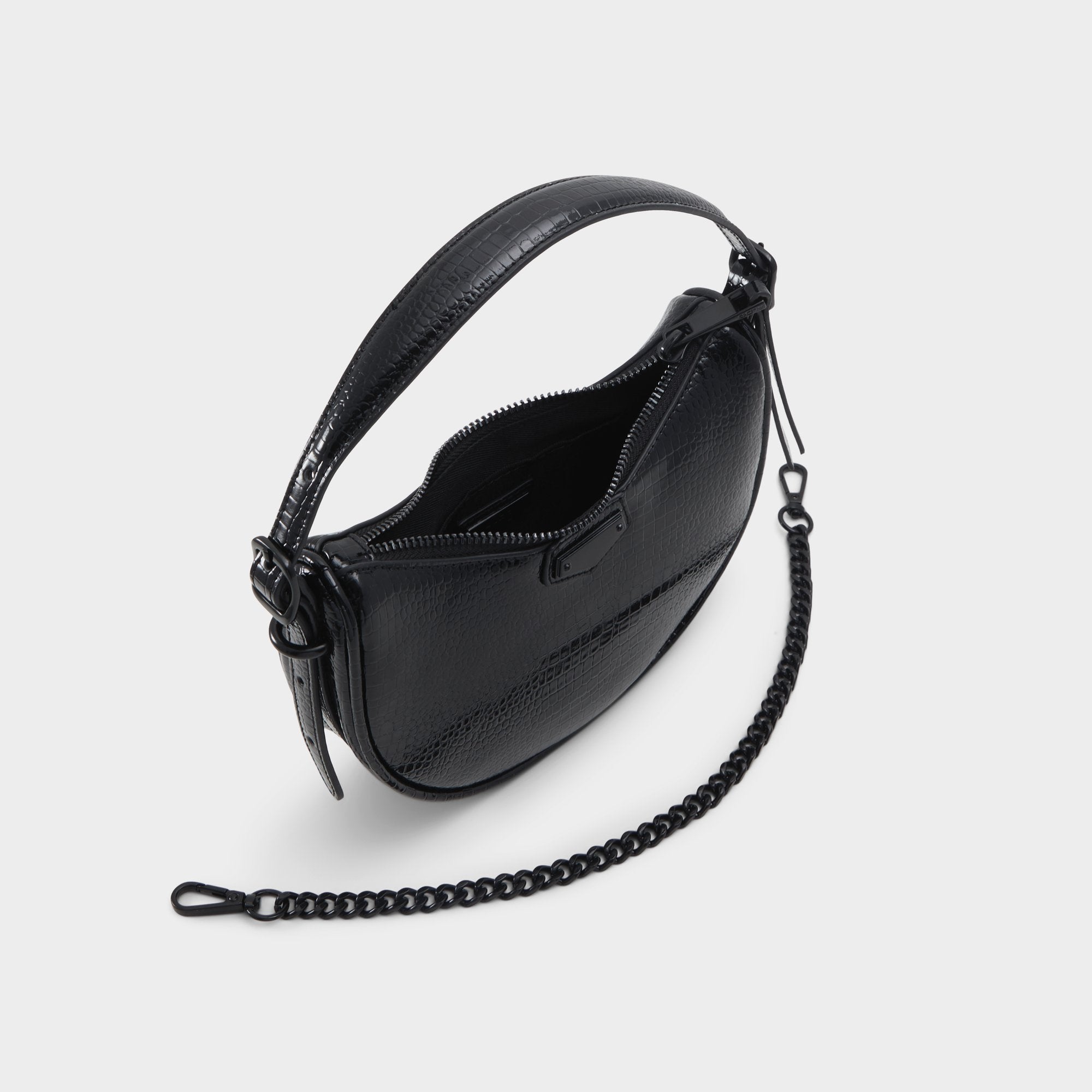 Presenting the ultimate mini shoulder bag! Complete with chic metal hardware, this snakeskin embossed bag is the perfect everyday accessory.