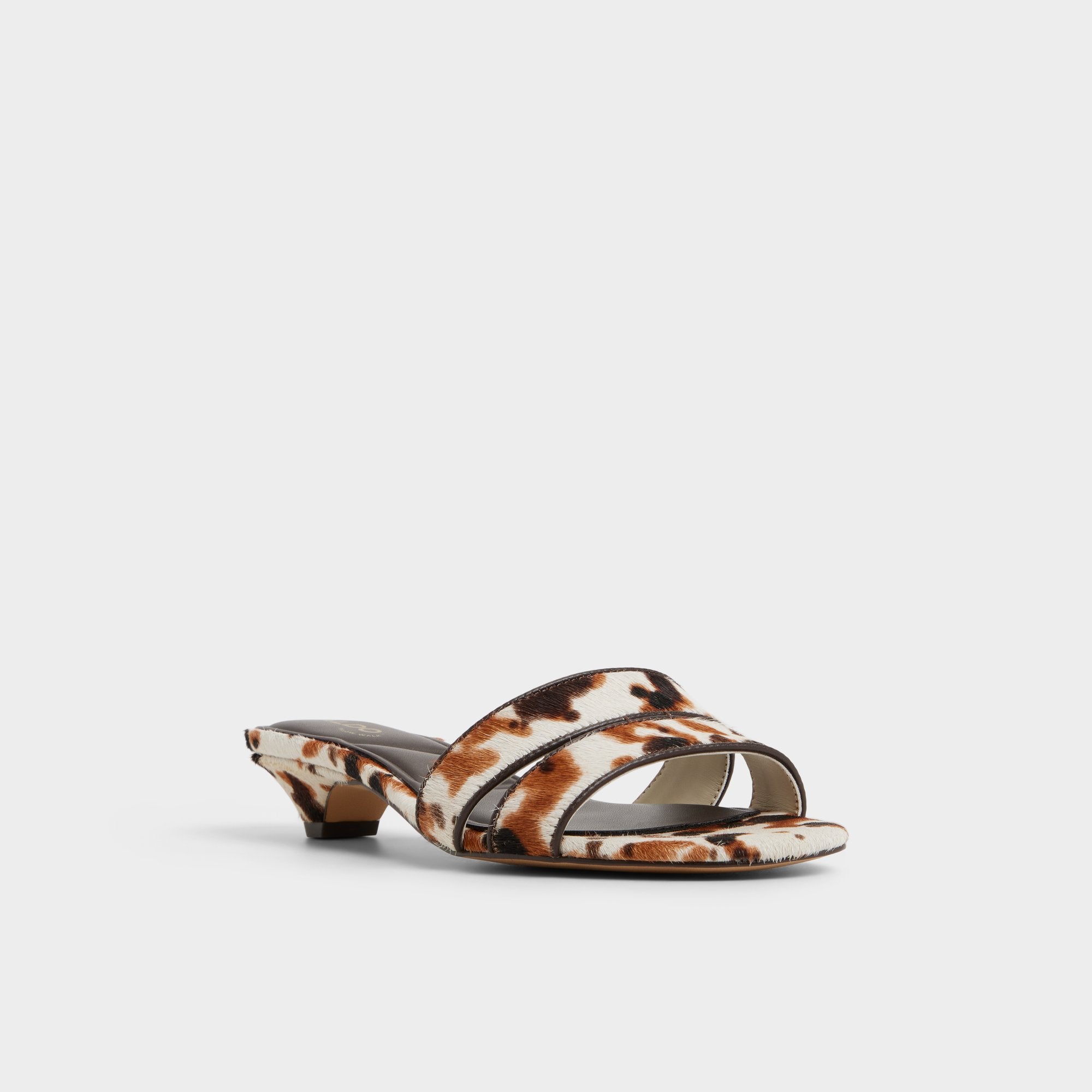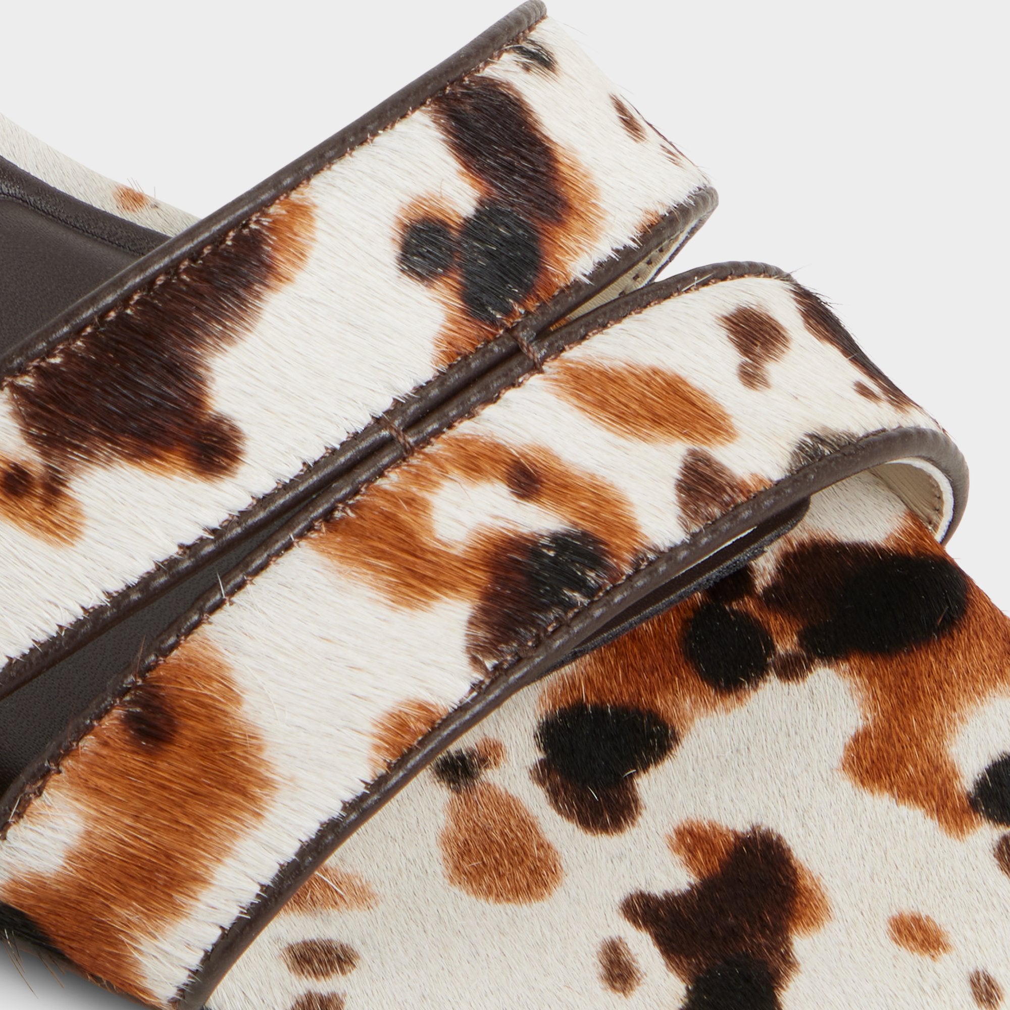 Faux-fur spots sculpt a bold, minimal slide, with a discreet micro-wedge delivering lift for effortless city strolls that feel polished from beach boardwalks to evening chats. Pair with ripped denim for concerts, or slip beneath a satin slip dress as terrace cocktails steal the sunset.